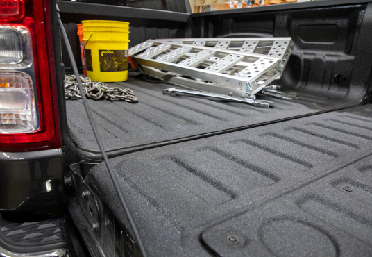 Another benefit of a Rhino Linings® Spray-On Bed Liner is the improved grip it provides for your cargo. The textured surface creates a non-slip, skid-resistant bed that keeps your load securely in place during transportation. Whether you're hauling equipment, materials, or other valuable cargo, this added stability reduces the risk of damage and ensures safe transportation.